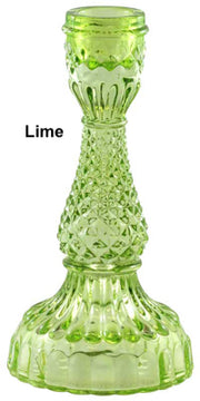 Vintage inspired depression glass, Bella Candle Holders are made of pressed and lacquered glass designed to hold our Twilight Dinner Candles.