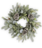 Frosted Fir Pine Wreath w/ Eucalyptus and Pinecones - 20"