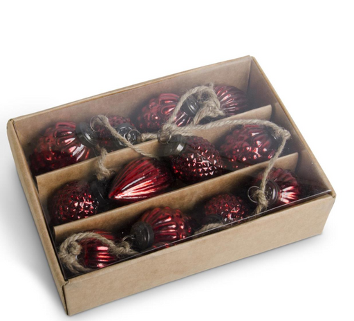 Box of 12 Mini Red Mercury Glass Acorn Ornaments