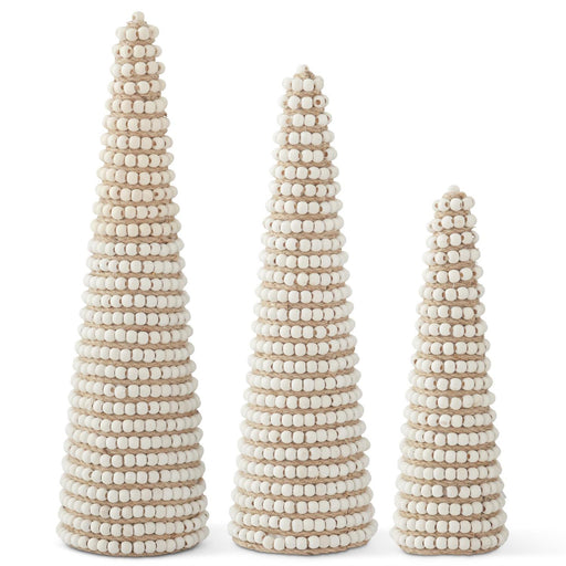 56270E Jute Cone Trees with White Beads Set of 3 17", 15" 10" Jute / Foam / Plastic Decor, Christmas, Figurine, Statue, White, Cream, Tan, Tabletop