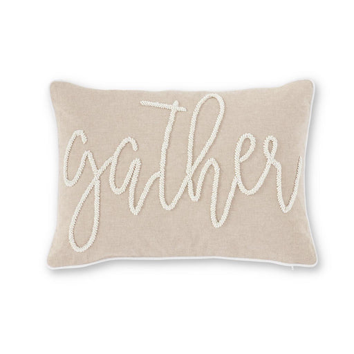 42271A Rectangle Tan White Beaded Gather Pillow 14" x 20" Decor, Throw, Accent, Fall, Harvest, Autumn, Thanksgiving, Cream, Lumbar
