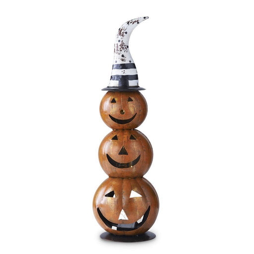 41187A Black and White Halloween LED Triple Stacked Jack-o-Lanterns 24H x 7.5W x 7.5D Metal Battery operated, 6 hour on 18 hour off timer Decor, H...