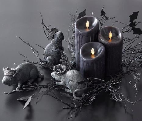 Vintage Spooky Figurines Jack o Lantern (A), Skeleton (B), Cat (C), Set of 3 (D) 2.75" x 2.5" x 8" TH00248 Halloween, Decor, Figurine, Spooky, Animal
