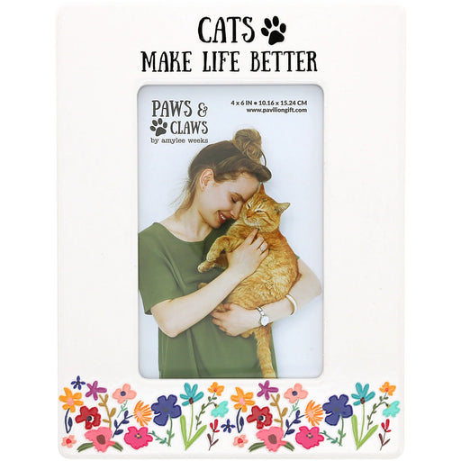 56624 Cats Photo Frame 6.25" x 8.25", Holds 4" x 6" Photo Cats make life better Resin / Glass Decor, Picture, Animal, Pet, Kitten