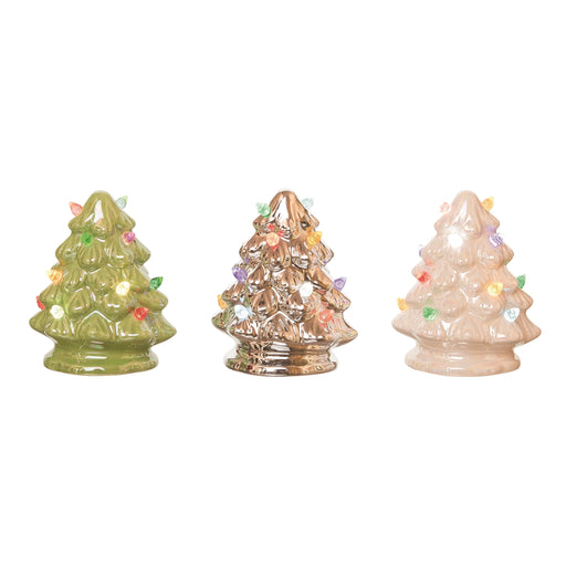 Y9136 Light Up Tree Figurines 3.5 in x 2.5 in x 4 in ea Left (A), Center (B), or Right (C) Ceramic Decor, Figurine, Statue, Christmas, Lighting, Li...