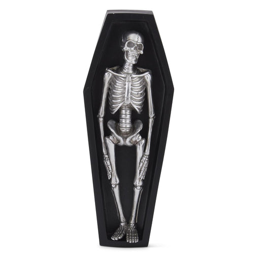 42559A Wall Hanging Silver Skeleton in Coffin 16" x 6" x 2.75" Resin Decor, Halloween, Black