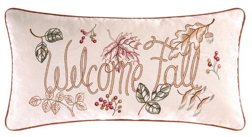 861561831 Welcome Fall Pillow 12in x 24in Embroidered Pillow Decor, Fall, Flowers, Birds, Lumbar
