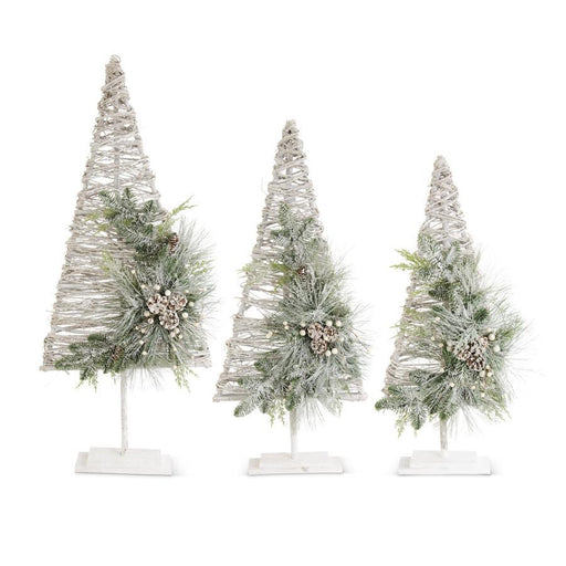 54288B Whitewashed Woven Twig Trees Large (A) - 45" x 18" x 5" Medium (B) - 35" x 16" x 4" Small (C) - 29" x 12" x 3" Wood Wire Decor, Christmas, ...