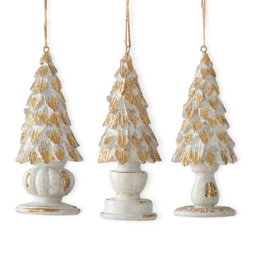 56021A Whitewashed Tree with Gold Leaved Ornaments 4.5" x 1.5" Left (A), Center (B), or Right (C) Resin Decor, Christmas, Hang, White, Gold