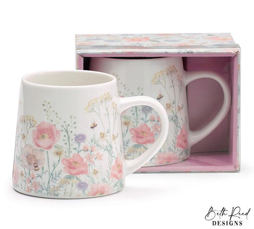 9749359 Wildflowers and Bumble Bees Mug 3.75"H X 5.25"W X 3.75"D / 2.75"Opening Dishwasher safe/FDA approved/Microwave safe. Reverie Floral cerami...