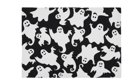 C842622646 Boo Placemat Set of 4 Cotton 0.5"H x 20"L x 14"W Inches. Black, Ghosts, Placemat