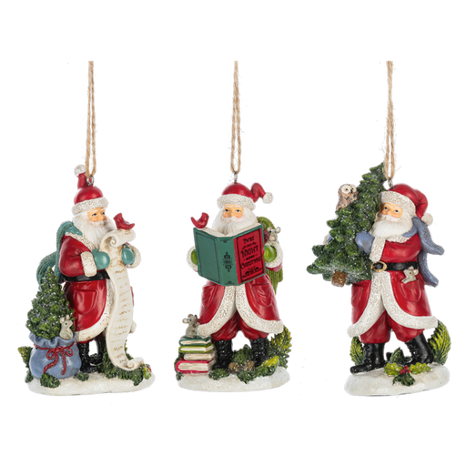 MX196853 Woodland Santa Ornaments 2.5" x 4" Left (A), Center (B), or Right (C) Resin Decor, Christmas, Tree, Hang, Res