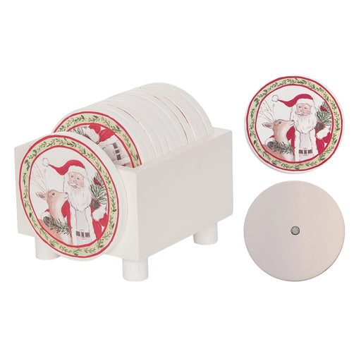TC04691 Cardinal Santa Wood Magnets Sold as singles 4" Dia x 0.25" D Wood Decor, Christmas, Fridge, White, Round, Vintage, Retro