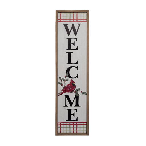TC04809 Cardinal Welcome Sign 9.75 in x 1.2 in x 39.3 in Wood Decor, Christmas, Greeting, Deck, Porch, Entrance, Leaning, White, Vertical