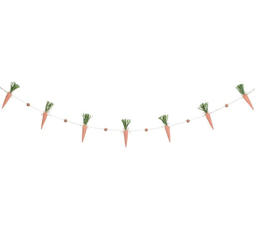 9746420 Carrot and Wood Bead Garland Soft orange fabric carrot garland on a jute rope. There is a wood bead between each carrot, totally 7 carrots ...