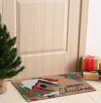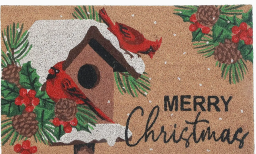 XM-J027AU Cardinals - Merry Christmas Door Mat 30"W x 18"L Welcome the holiday season with the Coir Door Mat featuring a Cardinal design with Mer...