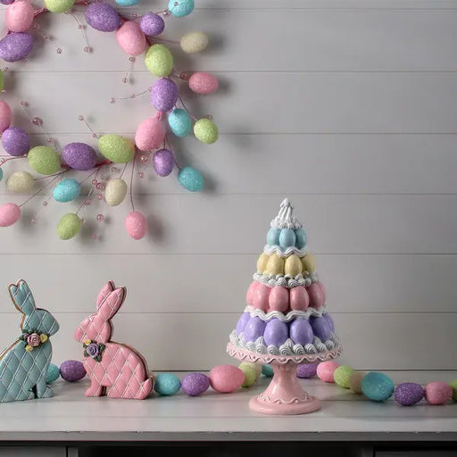 MT26181 Easter Egg Tree on Pedestal 14" H Resin Decor, Figurine, Statue, Pastel, Egg