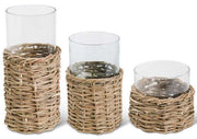 Clear Glass Cylinders in Woven Rattan Basket - 3 Sizes