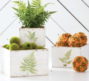 WHITE WOOD NESTING BOXES W/FERN DECALS set of 3