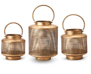 Gold Metal Mesh Lanterns w/Glass Hurricanes