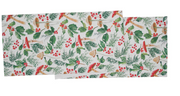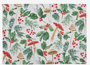 Mushroom Meadow printed tabletop collection brings the unique beauty of the forest right to your dining table. Red and brown mushrooms, forest leaves, and plump red berries create a painterly-style evergreen. Perfect for holiday or everyday decor.