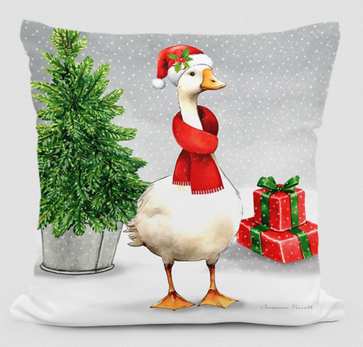 PPL-SN2401 Winter Duck Pillow 18" x 18" Square Polyester Decor, Throw, Accent, Indoor, Outdoor, Christmas, Animal, Bird, Goose