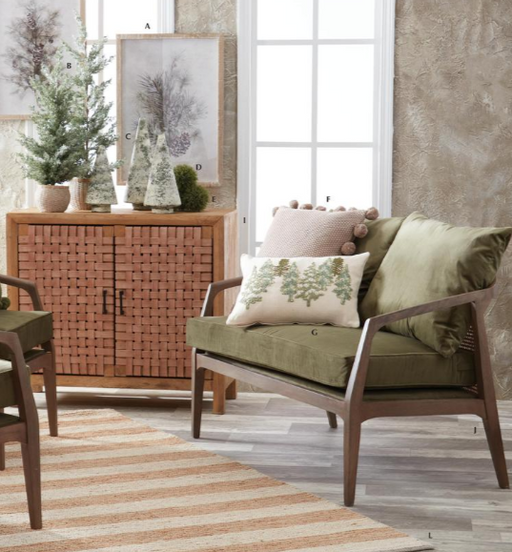 View full detailsCREAM CABLE KNIT PILLOW WITH 3 PLAID TREES & PIPING