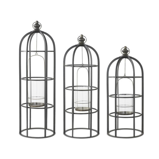 Black Metal Cage Lanterns with Removable Glass Hurricanes