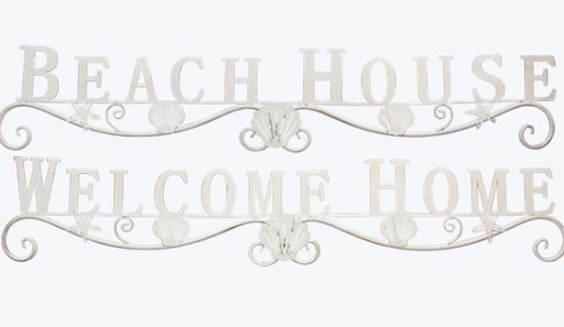 Metal ''Beach House'', ''Welcome'' Wall Sign with Shell Designs - 2 Assortment
