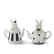 White Bunnies in Black & White Teapots
