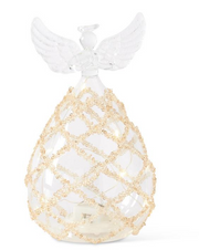 CLEAR GLASS LED ANGEL W/LATTICE GOLD BEADS