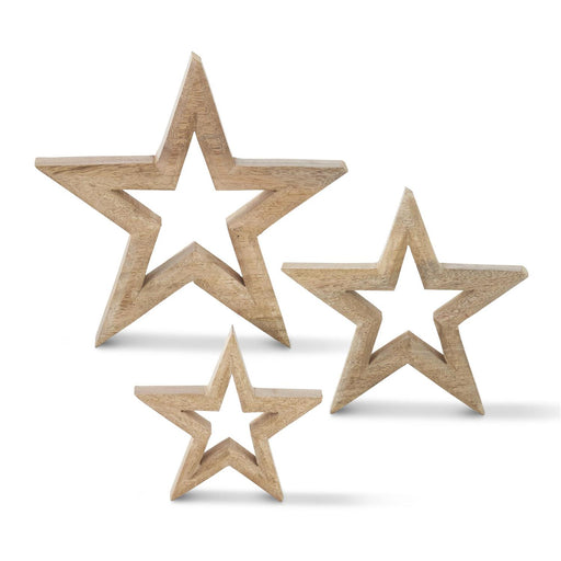 55432A Mango Wood Stars with Cutout Centers Set of 3 Large - 9" x 2" Medium - 6.75" x 2" Small - 5" x 2" Wood Decor, Accent, Natural, Brown, Beige,...