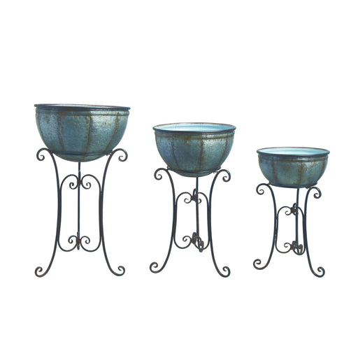 M1834 French Riviera Standing Containers Large (A) - Medium (B) - Small (C) - Metal Decor, Container, Blue, Grey, Gray, Planter, Indoor, Outdoor