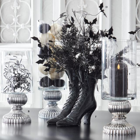 41085A LED MERCURY GLASS HALLOWEEN BOTTLES W/CORKS- 4 Options Skull (A), Crow (B), Cat (C), 12.5"H x 2.75"Dia. Halloween, Skull, Cats, Crows,...