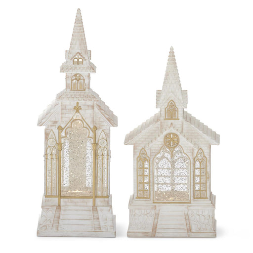 56215A Gold Trim Water Spinning Church Snow Globes Left (A) - 13" x 5" x 5" Right (B) - 10" x 6" x 6" Battery Operated Plastic Decor, Lighting, Lig...