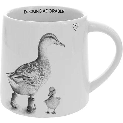 41210 Ducking Adorable Mug 5.3 x 4 x 4 in 17 oz Ceramic Decor, White, Black, Grey, Gray, Animal, Duck, Bird, Duckling, Coffee