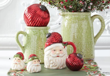 53180C Santa Face Ceramic Mug w/Holly on Hat 4.5"H x 5"W Christmas, Vintage, Coffee, Tea, Hot Cocoa