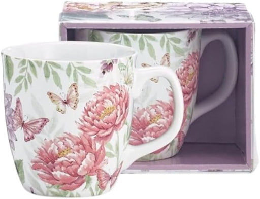 3125155 Bloom Flutter Butterfly Mug 4,25" x 5.25" x 4" 13 oz Ceramic Decor, Cup, Coffee, Tea, White, Flower, Pink, Floral, Spring, Summer