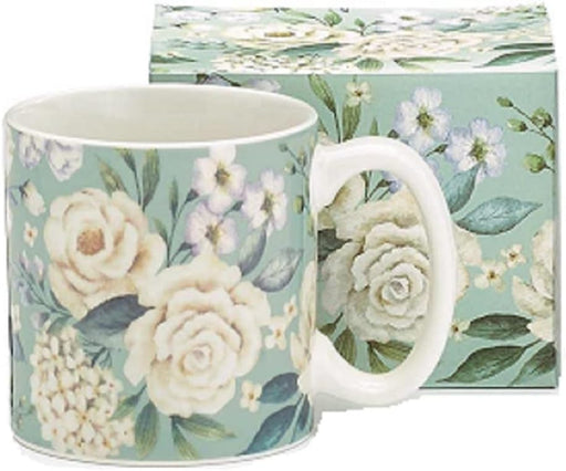 9746057 Ivory Blooms Mug 3.75 "H x 3.25" Dia. 13 oz Ceramic Decor, Cup, Mug, Coffee, Tea, Glass, Spring, Summer, Blue, Green, White, Flower, Floral