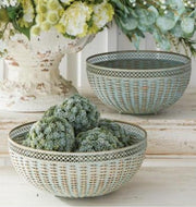 Verdigris Woven Bowls with Metal Trim- 2 Sizes