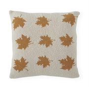 Cream Cotton Knit Pillow with Yellow Leaves