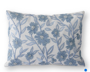 Lumbar White Linen & Blue Embroidered Floral Pillow with Tassels