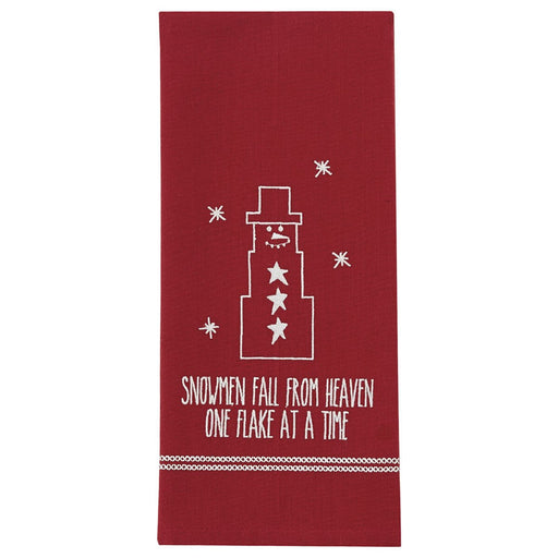 83-852 Snowmen Fall From Heaven Embroidered Tea Towel 18" x 28" Cotton Decor, Red, Christmas, Kitchen, Dish, Rag, White