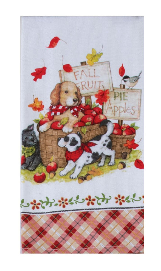 H7188 Fetching Fall Apple Basket Pups Dual Purpose Terry Towel 16" x 26" Cotton Decor, Fall, Harvest, Autumn, Thanksgiving, Kitchen, Dish, Tea, Rag...