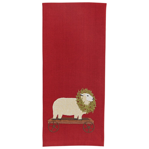 7499-674 Sheep with Wreath Tea Towel 18" x 28" Cotton Decor, Red, Christmas, Animal, Farm, Kitchen, Dish, Rag