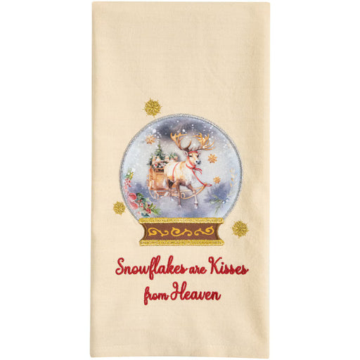 9847-106 Snow Globe Reindeer Decorative Tea Towel 18" x 28" Cotton Decor, Christmas, Cream, Beige, Snowflakes are kisses from heaven, Kitchen, Dis...