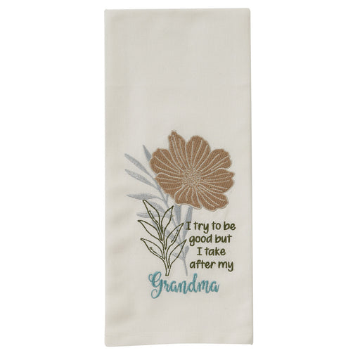 7499-600 My Grandma Embroidered Dishtowel 18" x 28" Decor, Tea Towel, Floral, Flower, Brown, Cream, Grandmother
