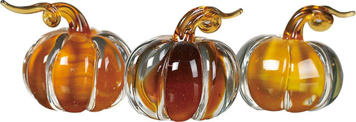 J5587 Mini Glass Amber Pumpkins Set of 3 2" Dia Glass Decor, Fall, Harvest, Autumn, Thanksgiving, Small