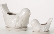 RAISED FLORAL BIRD PLANTER SET- 2 Sizes