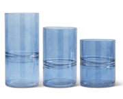 Blue Glass Cylinder Vases w/Inlayed Strips - Set of 3